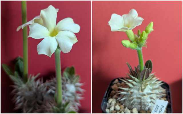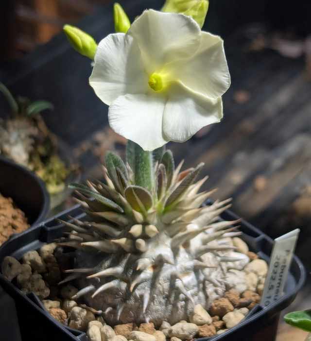 昨年あたりから実生のパキポ達がチラホラ花芽を上げてくれる。実生を始めた当時はいつか種子から育てた子達が花を咲かせてくれたらどんなに嬉しいだろう、と思っていたが近頃ではどれが咲くかなぁ?なんて余裕のある自分を戒めないといけないかな、なんて思っている。2024の花の記録は中途半端になってしまっている。