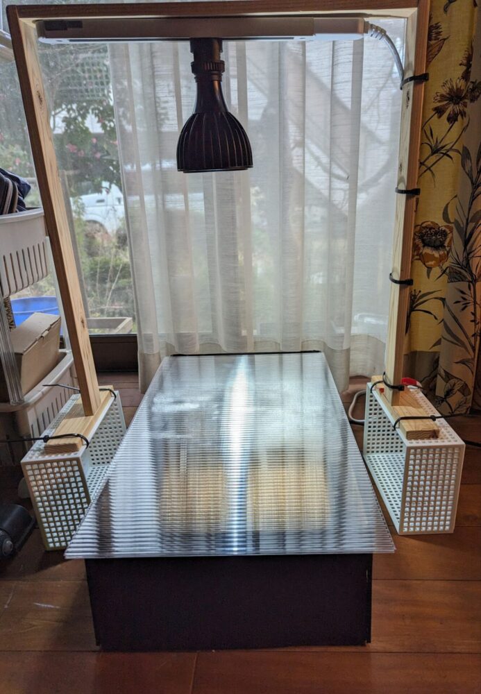 育苗用ヒートマットでは底面しか加温されない。そこでヒートマットを使用した加温BOXを作成。
