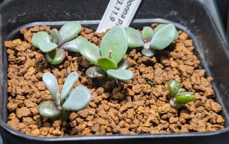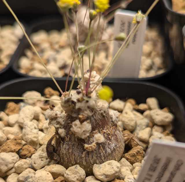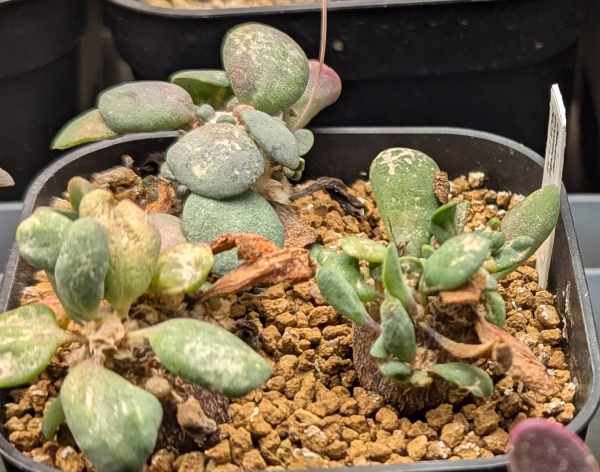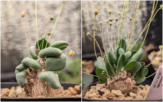 塊根部は良く見えないけど丸い葉と花芽が元気
