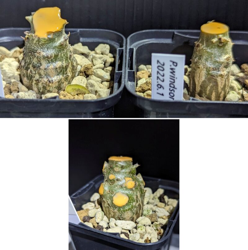 凍傷でカットしたウィンゾリー達。しっかりと新芽が揃ってきた。カットした当時は大事な実生達を無くしてしまったかと諦めていたが、今後はどんな姿になるのか楽しみになった。