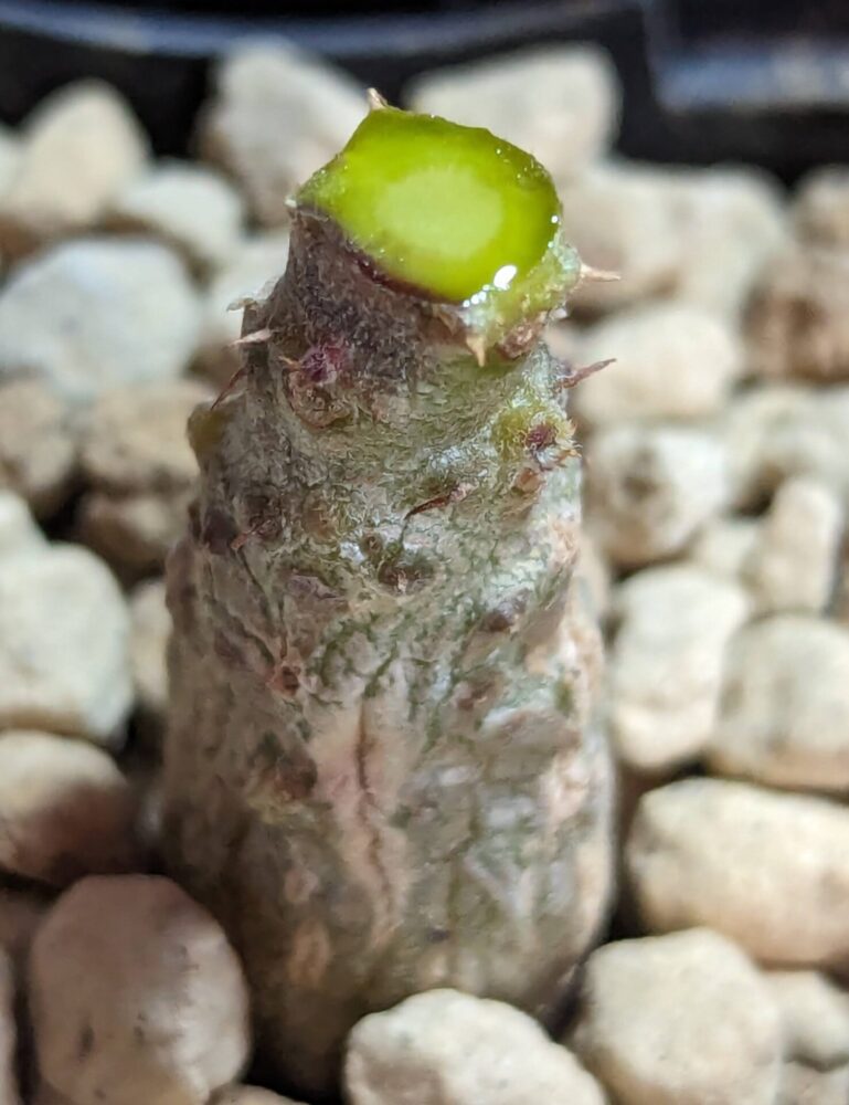 頭頂部の腐りはそのままに横から新芽が出てくれた。きっとこれで大丈夫だろう。