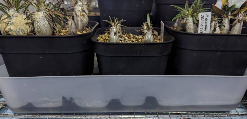 塊根植物を育て始める前にも多少の植物を育てており、多少の知識もあったので、最初に腰水の意味を聞いた時は植木鉢の底皿に水が溜まった状態で管理すること?え?根腐れするじゃん?