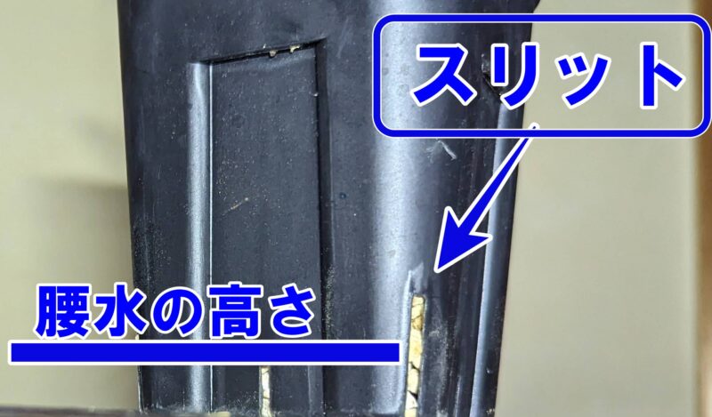腰水という呼称で腰というと、ずいぶん高い位置まで水を貯めるイメージだが上記の高さではヒザ程度の高さまでしか水を貯めていないので自分の中で分かりやすくヒザ水と勝手にいっている。