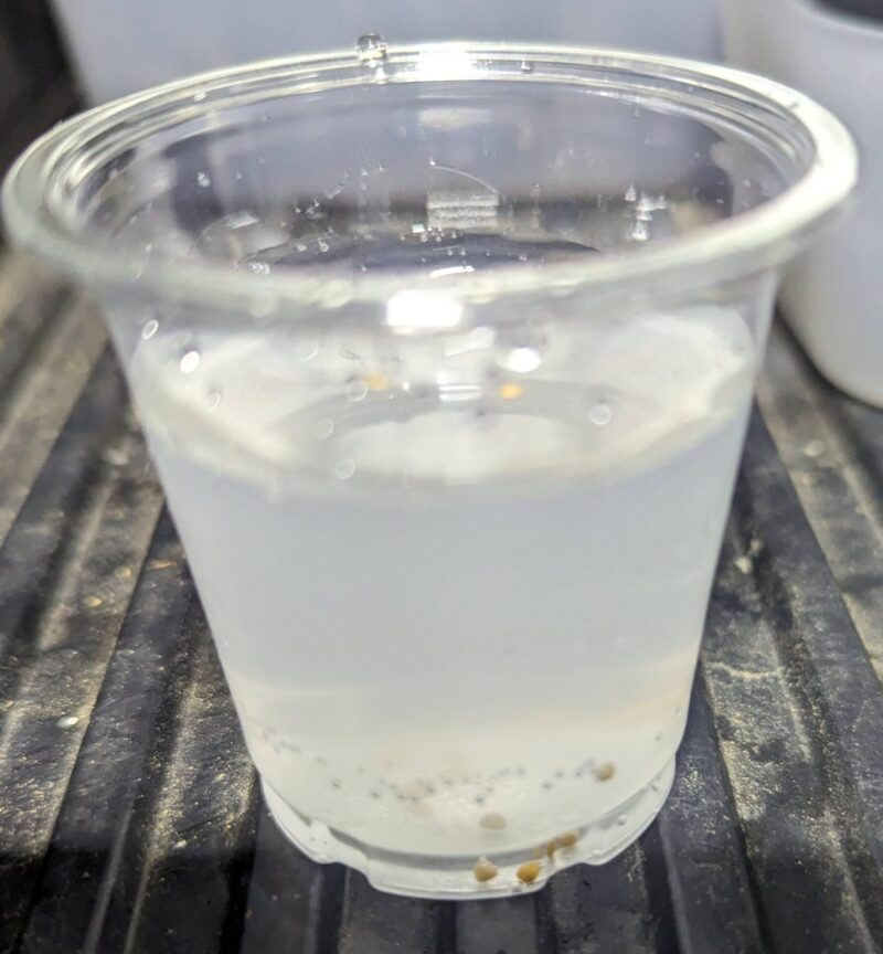 透明のプラカップに種子を入れて…
