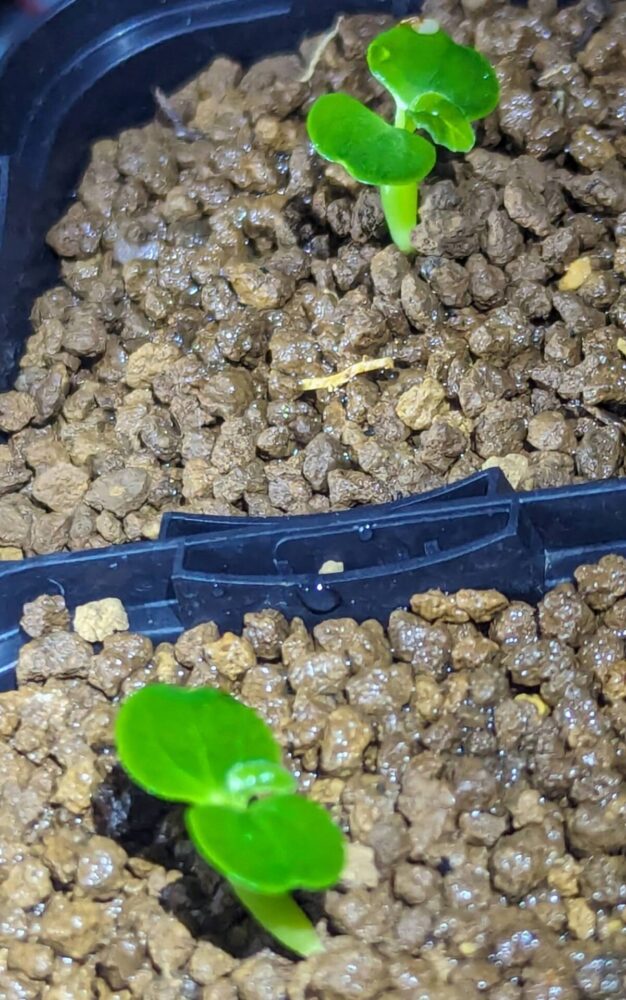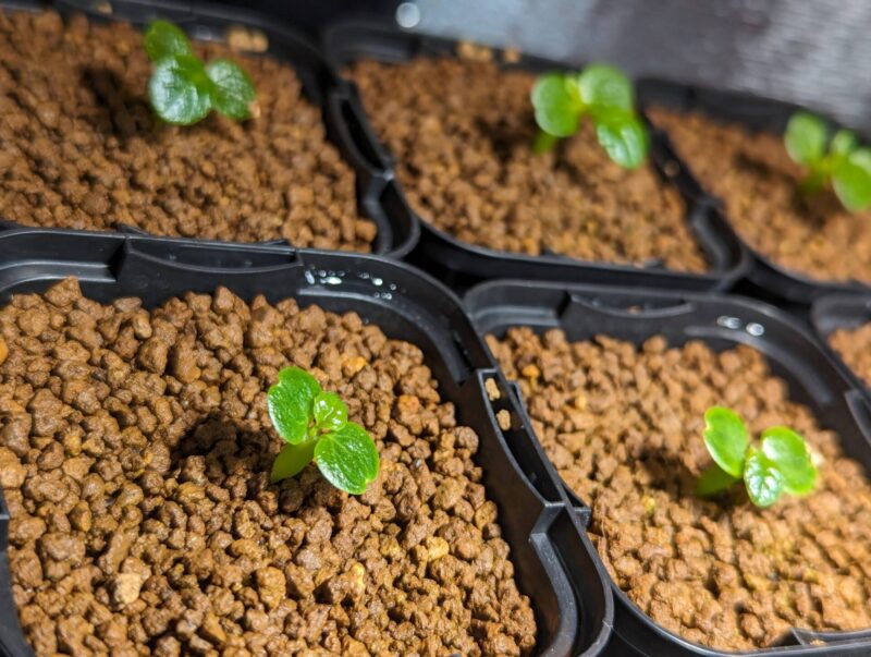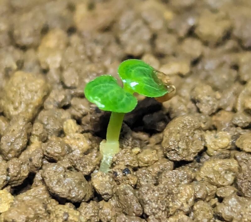 発芽してから1週間が経過。しっかり子葉が広がってイイ感じ。この芽は早く発芽したけど全体では3割しか発芽していない。ちょっと不安…