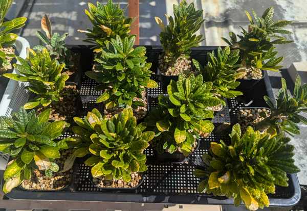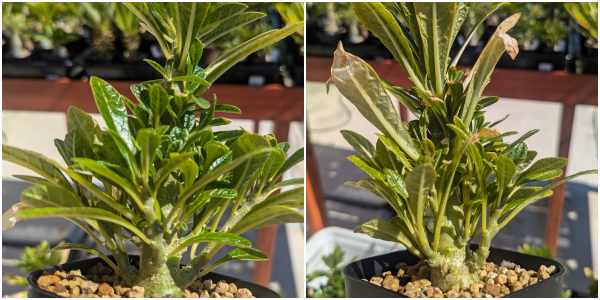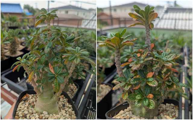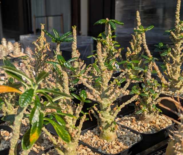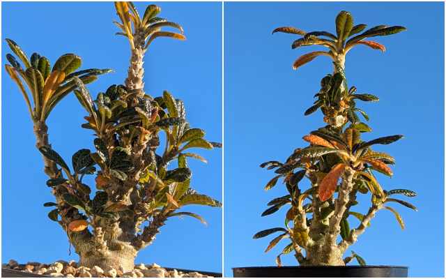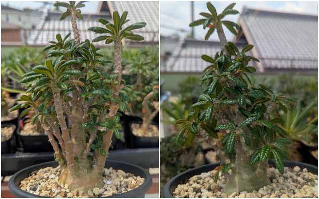 悪くはないんだけど欲を言えば株元がもっと太って欲しい。2024の夏は直射でかなり攻めたと思う。葉は焼けてかなり落ちてしまったし、小ぶりな細い葉ばかりになって少し寂しい。