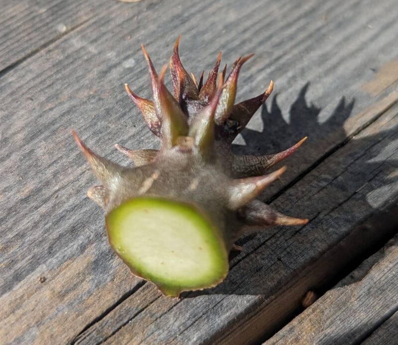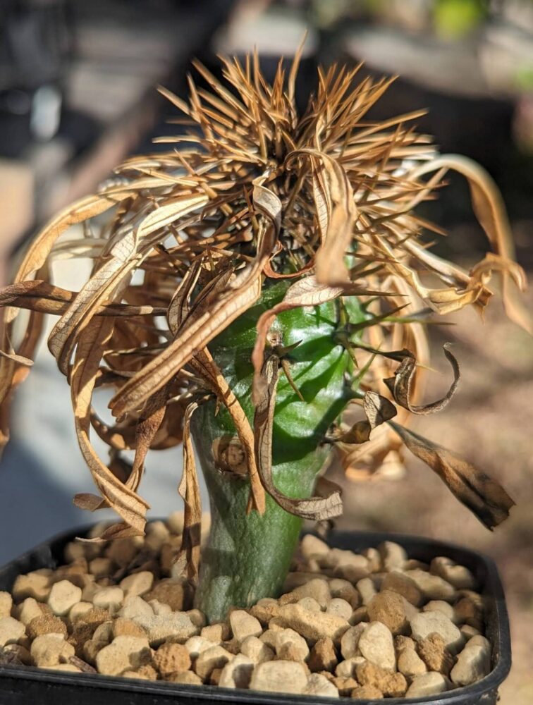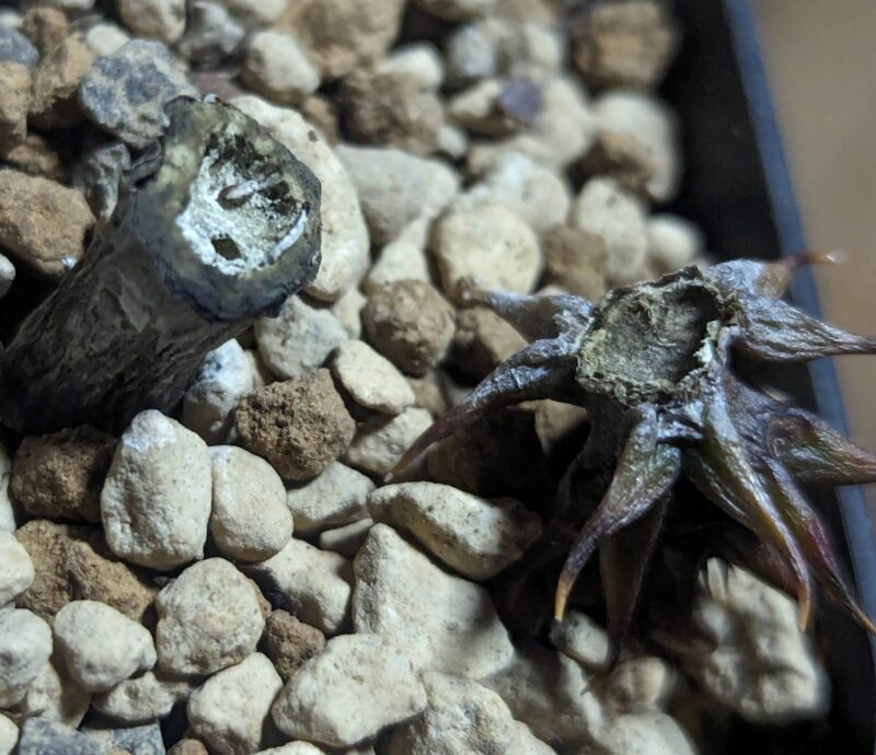 元々、接木用に育てていたラメリーだったのだけど、置き場が無いのと耐寒性を確認するため屋外軒下で管理していたが3月に入り、あと少しで春というところで凍傷による腐りが頭頂部から広がっていた。
