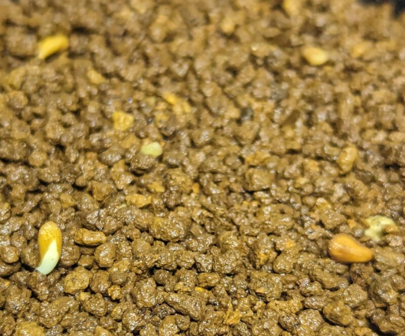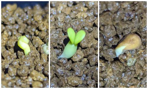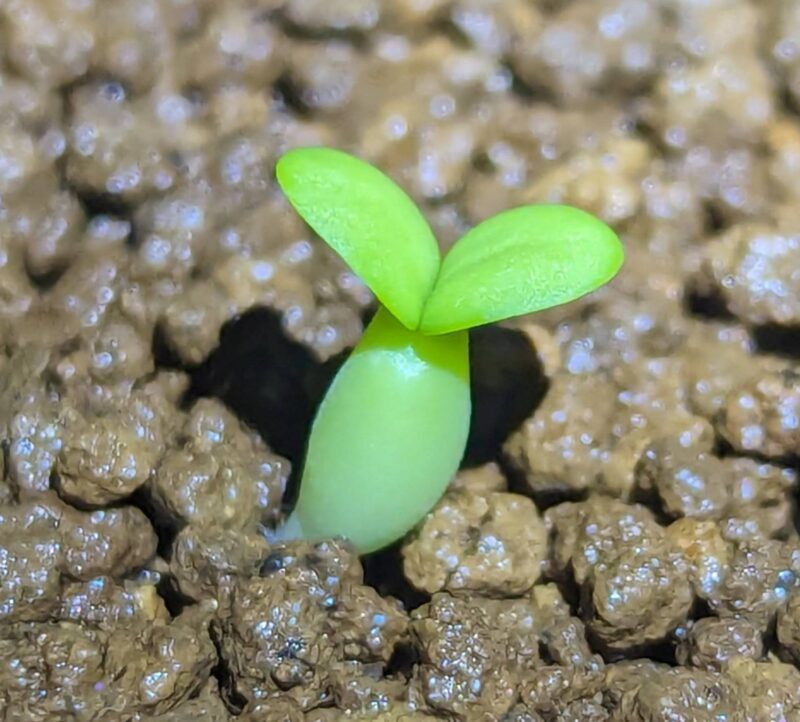 今回はメネデールのみ24時間浸けた。自分の認識では暑さに弱く発芽後に落ちやすいと感じているので加温室は敢えて使わずに3月の常温(10℃前後)で管理。結果は???
