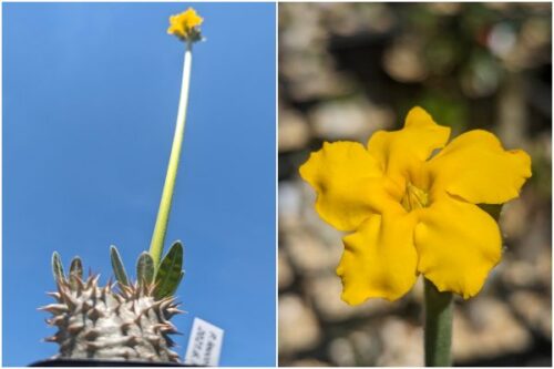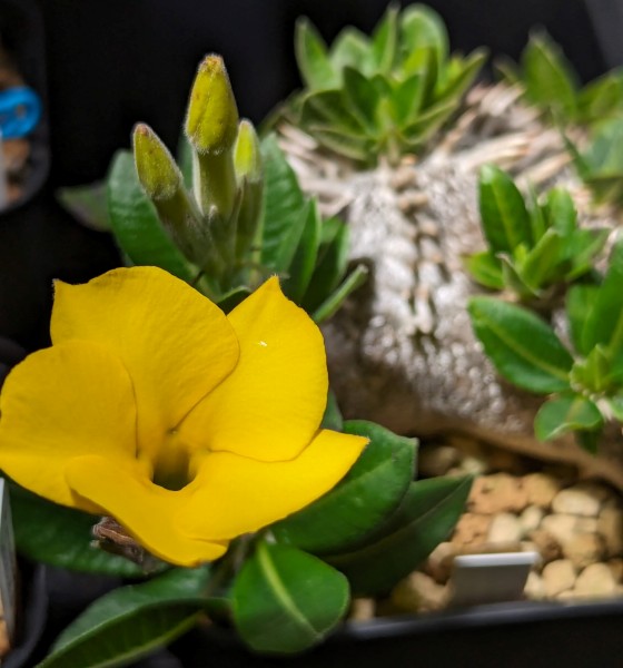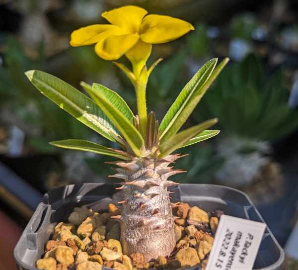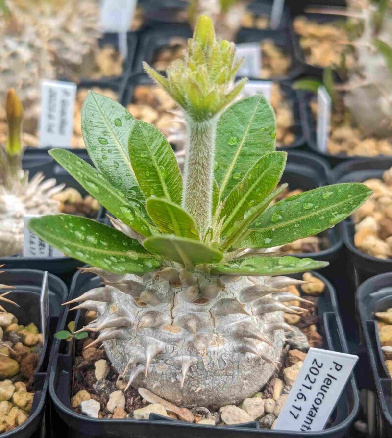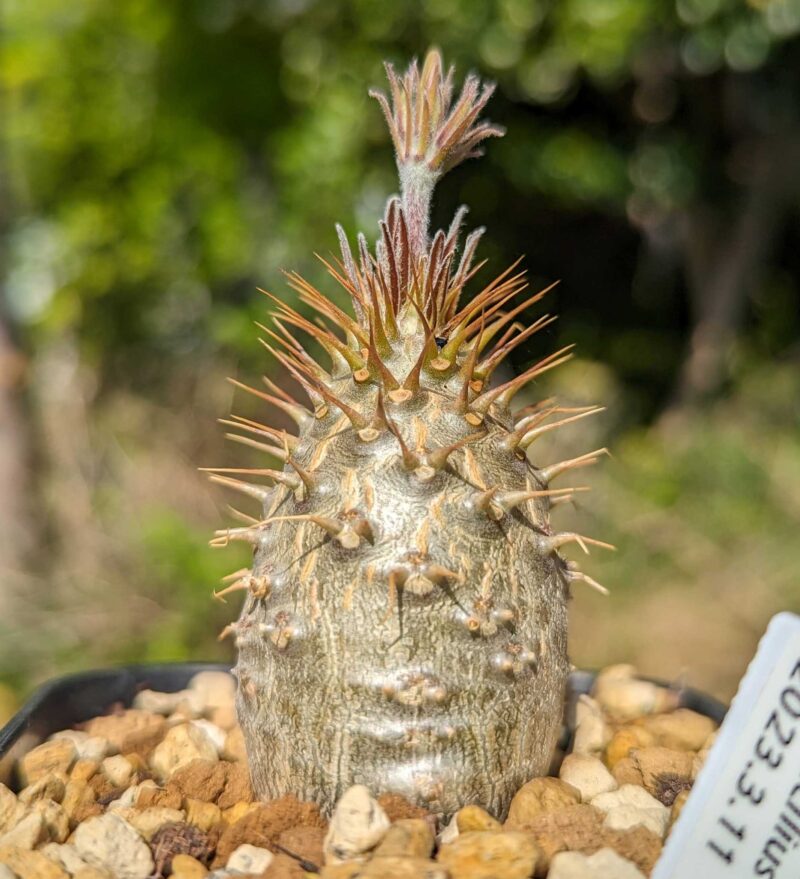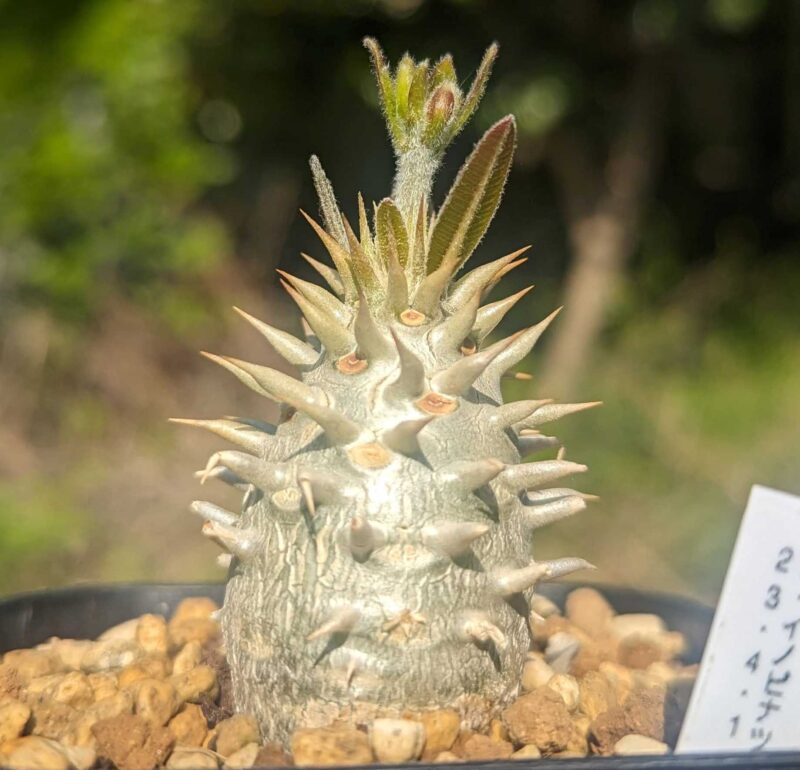 自分で播種したパキポディウム達が続々と花芽を上げてきた。