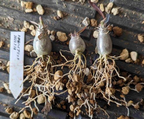 伊藤ハイブリット 伊藤ハイブリット 2023実生 成長記録 伊藤ハイブリット 2024.08.042026.02.15 伊藤ハイブリットという名で購入した種子からの成長記録 デンシフローラム ホロンベンセ ロスラーツム 三元交配種 目次 2023.7.18 実生スタート2024.4.292024.6.252024.8.42025.3.222025.7.152025.9.19 2023.7.18 実生スタート 2024.4.29 冬越しはヌクヌク加温室管理だったのにしっかり寝てくれた。4月に入り暖かくなってきてモゾモゾと起き始めたから植替え。2年目はどんな成長を見せてくれるのか。 2024.6.25 2024.8.4 伸びてきた 2025.3.22 2025.7.15 2025.9.19