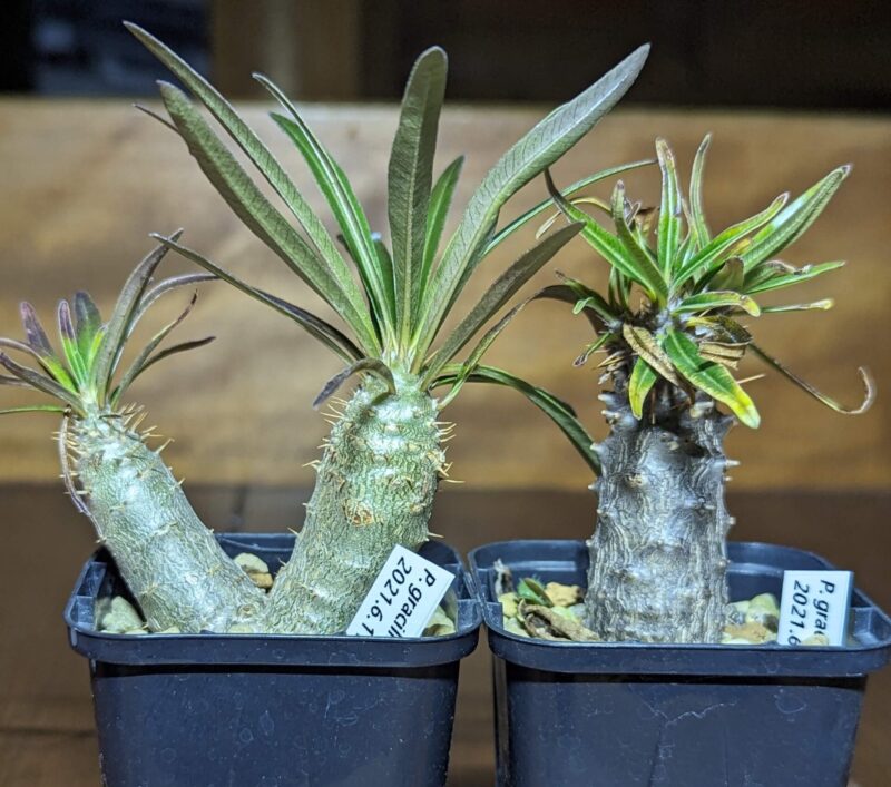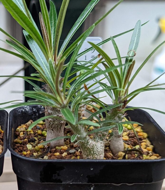 このグループは寄せ植え状態の時からヒョロヒョロ。おそらく実生を始めたばかりの頃の自分が色々と試していたりして用土に何やらヤバイ物とかを混ぜていた可能性が。