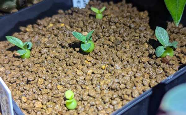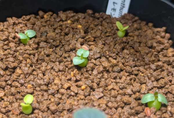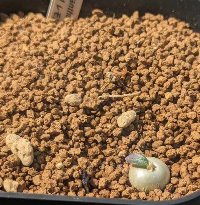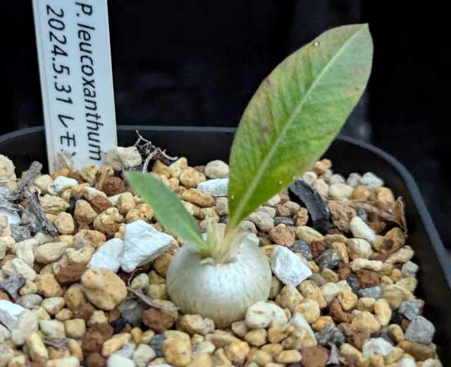 2021にレウコキサンツムの種子を購入し2024に開花。しかし黄花だったり、花茎が長い白花だったり。調べてみるとエブレネウムが混じったレウコキサンツムが多いとのこと。となるとコレクターとしてはレウコっぽいレウコが欲しくなる。塊根がベチャっとして花茎が短く、葉も短く尖っていて、花弁に頂点のある白花。ヤフオクでレウコの自家採取の種子を探し購入。親株の形状も写真で確認したので期待大。そしてレウコと確信が持てるのは数年先…。ロマンだ…