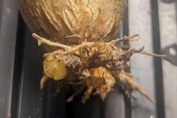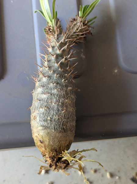 今季、いくつかの株が花芽を上げたが、なかなか受粉がうまくいかず種子鞘が付いても落ちてしまったり。その中でしっかりと種子鞘をあげていたこの個体。初のグラキリスの種子を採取できるかも?っと楽しみにしていたけど、少し前から塊根部に凹みが。水をあげても、雨に打たれても状況は変わらず。。。