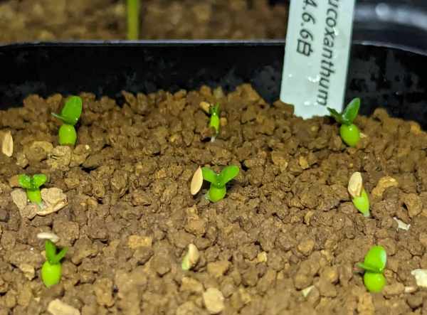 扁平樹形、短花茎、白花を求めてヤフオクで信用できそうな自家採取種子を購入。数年後、理想通りのレウコキサンツムになるのだろうか?長い記録の開始。