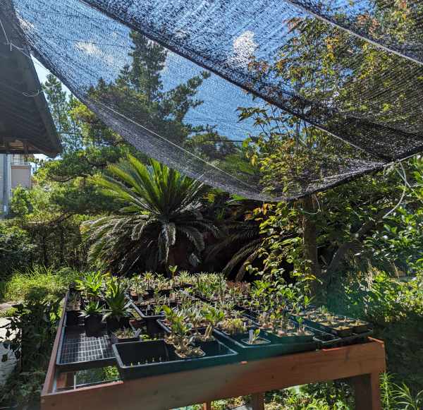 7月までは株の様子を見ながら水やりをしていたが、8月に入り猛暑が続いていたため、夕方以降に温度を下げるために毎日軽めに散水をしていた。特に若い株には多めに。後で記述するが、7月末に強い日差しで数株を日焼け、火傷させてしまったのでそれ以降は散水をほぼ毎日行っていた。