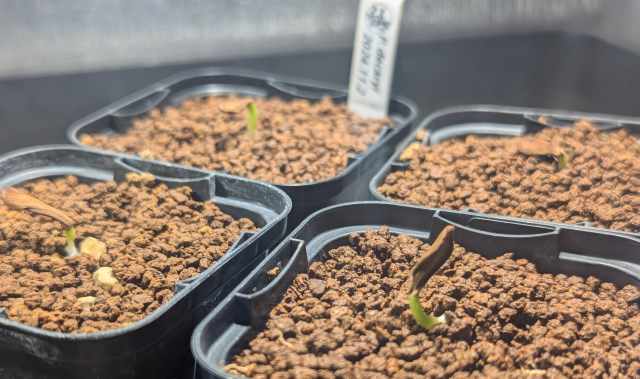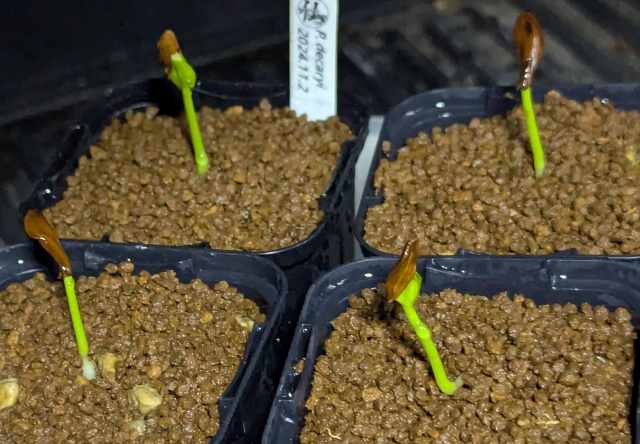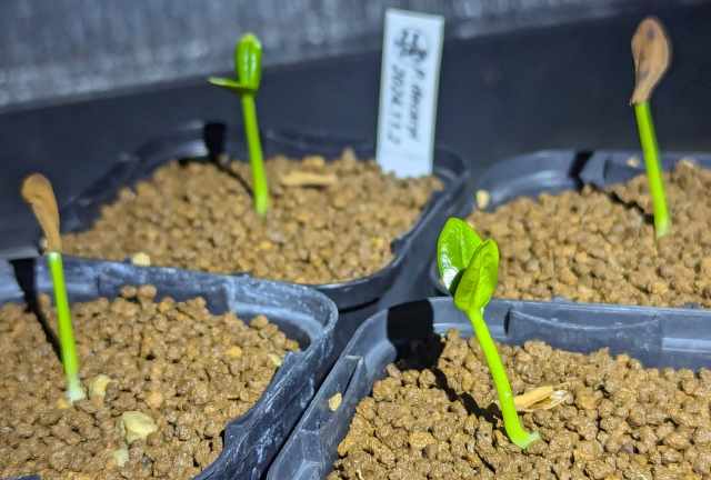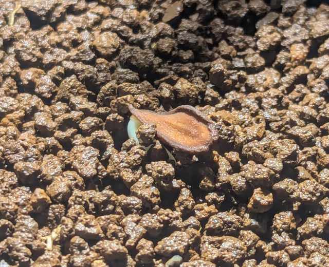 ヒートマットを稼働させたら3つ発芽。ここから土に載せてガンガン照射