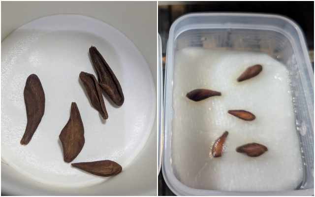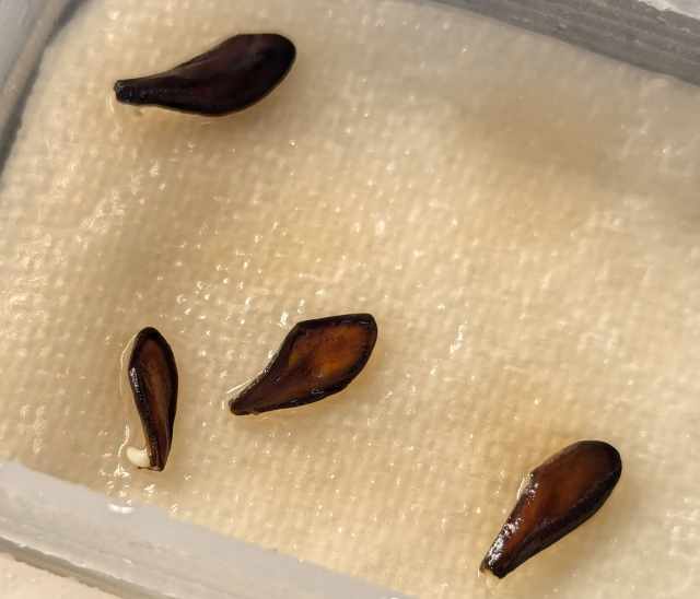 キッチンペーパーにティッシュ載せで発芽を待つ