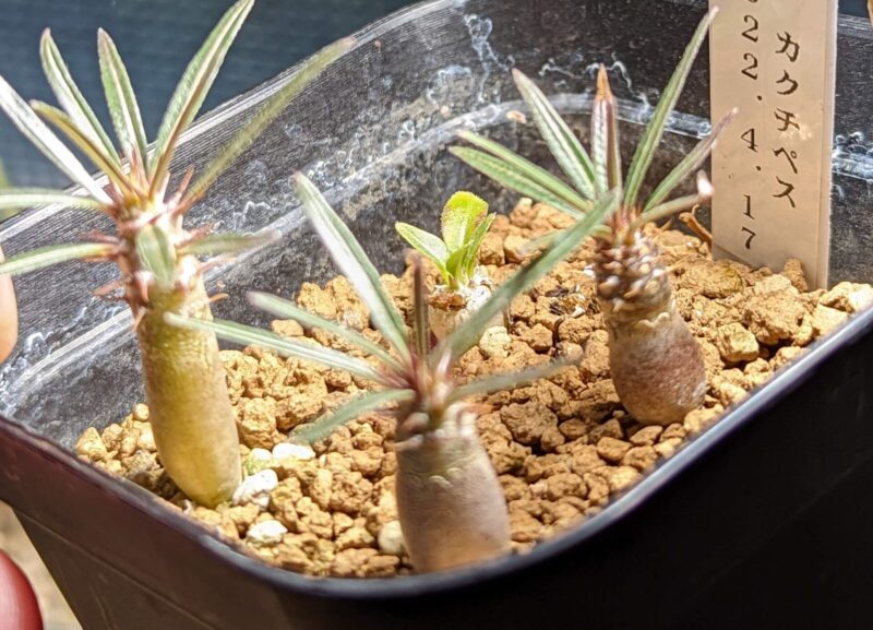 徒長しているカクチペス。水やらんと凹むし、あげると伸びるし。