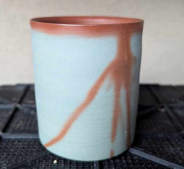 こちらはニュートルコというカラーモデル。様々な色のモデルが多数あり、そのモデルの中にもデザインは様々ある。特徴である薄茶色の模様は火襷といい、焼成時に藁が燃え、成分が付着したものが火襷という模様となるとのこと。そのため焼成時の状況により火襷の模様が多く出たり少なく出たりとするので同じデザインが二つとない。