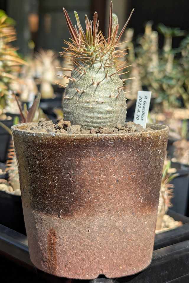 塊根植物を始めたころは陶器鉢には全く興味が無かった。プラ鉢が使いやすく安いし、手で持って重さで水やり時期を感じられる。今でも育てやすいのはプラ鉢だと思うし扱いやすいので9.9割がプラ鉢育成。
