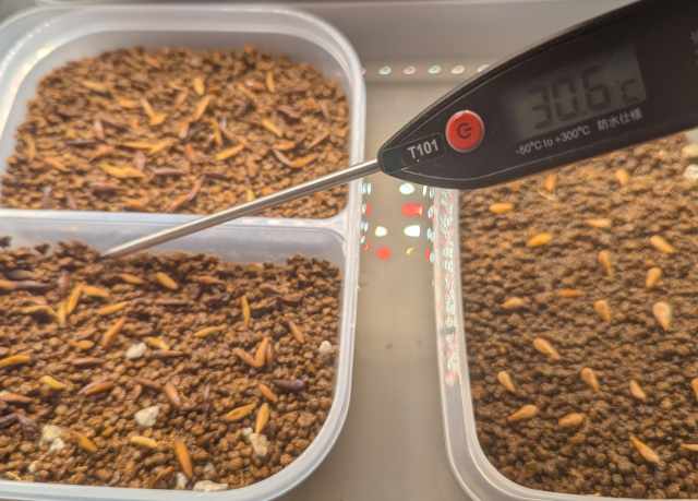 ・ヒートマットを温度設定できる物を使用。34℃設定で表土が30℃辺りになるようだ。ヒートマットの物にもよるが計測をしながら適した温度になるように模索。