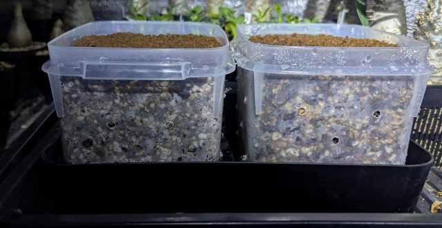 グラキリス畑とかウィンゾリー畑とか幼苗の時しかできない一つのトレーに複数の苗をワサワサと管理するのが自分の中で流行ってて…。市販の育苗トレーでは大きすぎるし浅いので背高のタッパーを利用する。これによって根張りの自由度が広がり成長を促すことを目的とする。