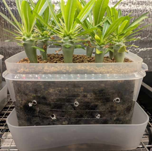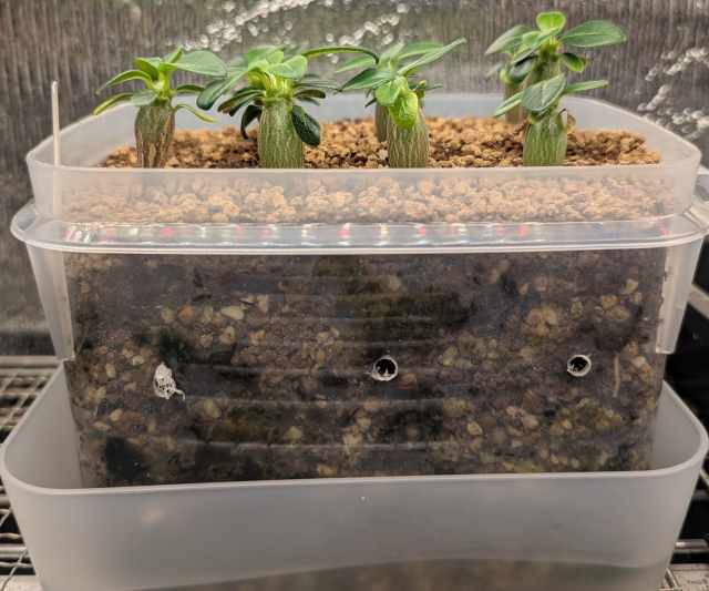 これぐらいになったら根を下に下に伸ばすために底面給水のみにして、上からの吸水を断った。