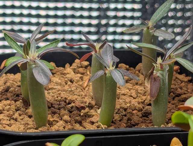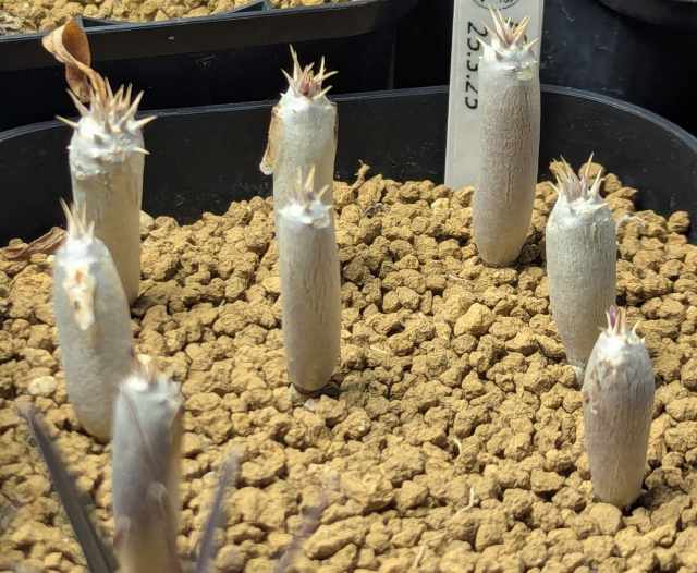 イノピナツム パキポディウム塊根植物実生 イノピナツム 2025.3 実生 成長記録 イノピナツム 2025.06.062026.02.14 Pachypodium rosulatum var. inopinatum 南アフリカから輸入発芽率は1割ほどカビの猛攻に負けずに発芽してくれた 目次 2025.6.62025.9.212026.1.3 2025.6.6 まもなく3ヶ月。葉焼けしてるのに伸びてる。バランスが難しい。 2025.9.21 2026.1.3