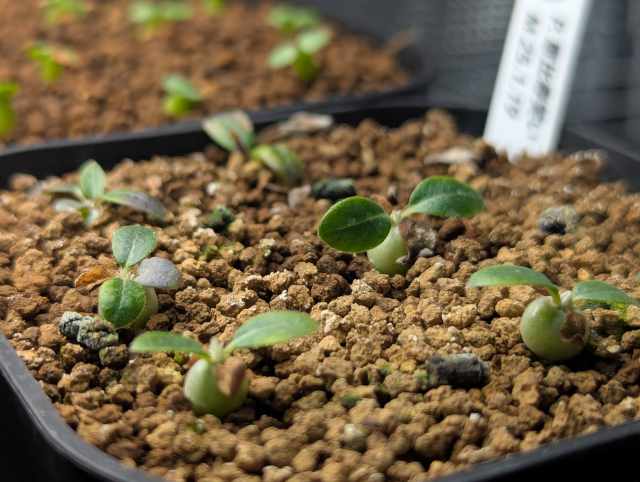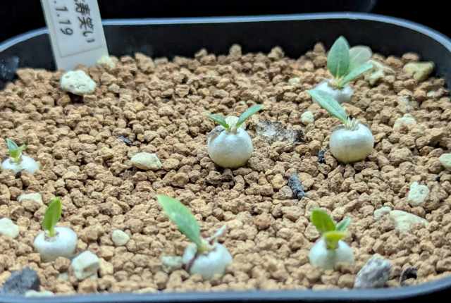 恵比寿笑い パキポディウム塊根植物実生 恵比寿笑い 2025実生 成長記録 恵比寿笑い 2025.06.062026.02.15 Pachypodium brevicaule和名 恵比寿笑い 2025.1.19播種 2025.5.22 2025.10.2