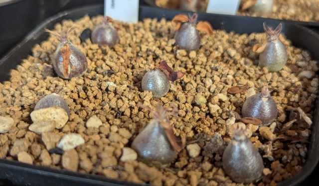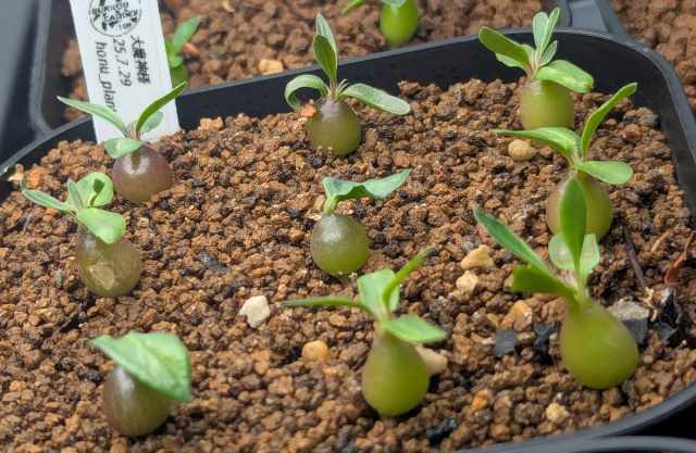 マカイエンセ パキポディウムマカイエンセ塊根植物実生 マカイエンセ 大魔神 2025.7.29 実生 マカイエンセ 2025.09.112026.01.18 親株 大魔神様@honu_plants さんから譲って頂いた大魔神様から採取された種子。立派な親株のようなマカイエンセに育てたい。 目次 2025.8.72025.8.272025.9.112025.10.52026.1.13 2025.8.7 2025.8.27 2025.9.11 2025.10.5 2026.1.13 加温室で管理してたが休眠してしまった。諦めて春にしっかり目覚めてもらうために少し寒さにも当てて管理中。