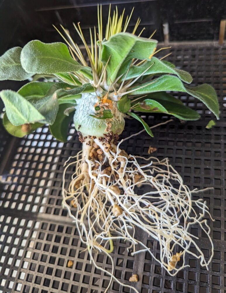 塊根部がひび割れてきた。いい感じで成長してる。