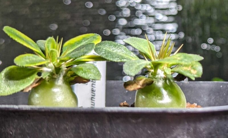 塊根部が丸くなってきて本葉もしっかりしてきた