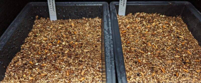 本来はプレステラ90に土をセットして浸けた種子を載せてセット完了なのだが、全部が発芽するわけじゃないので(1つのプレステラで1つしか発芽しなかったら場所的にスゴく勿体無い)一旦別の苗床を作って発芽させ、発芽したものからプレステラ等に移す。