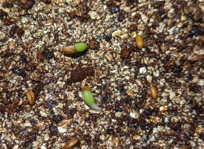 種子を浸ける時間は合計6時間~12時間。24時間浸けても良いんだけど、たまに水の中で発芽しちゃう事もある。これがなんか良くない結果になる時がある。発芽したのに酸欠??になって調子が悪くなる事がよくある。