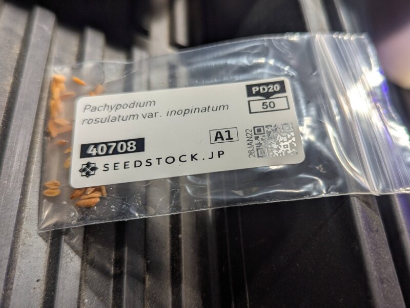 ベンレートはカビやすいパキポディウムの種子を殺菌する薬品。大体2~3時間ぐらい