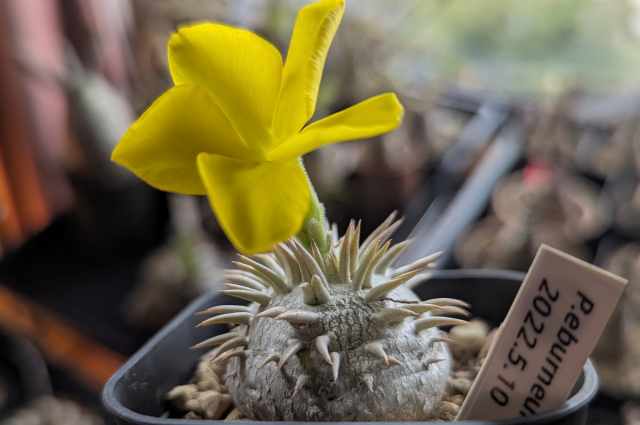 ん・・・黄色か…。黄花、短花茎、笑いっぽいけど花が違うような。