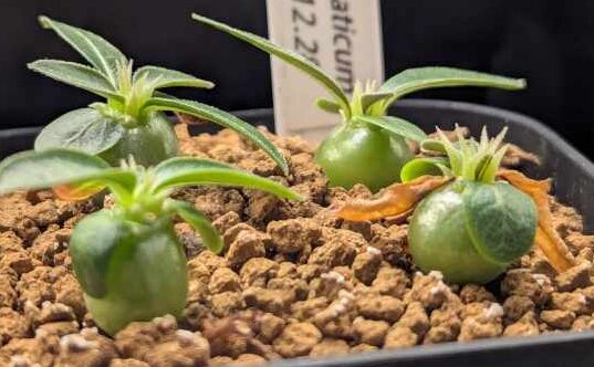 エニグマチカム エニグマチカム2025.12実生成長記録 エニグマチカム 2026.02.26 2025.12.28 播種こちらも@Blue.leaf.333さんからの遺伝子。環境が良かったのかスクスク成長中。このまま来季の冬も寝かせない勢いで! 2026.2.26 2ヶ月経過 真ん丸で葉の勢いもありスクスク成長中。伸びる品種ではないので、光は中程度。実はこれぐらいがイキイキ成長するのだと思う…が。